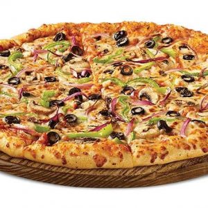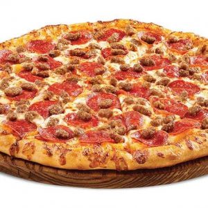 Копчена грудинка, ніжні ребра, копчена ковбаса, бекон і чеддер з листям салату, помідорами, барбекю та ранчо.